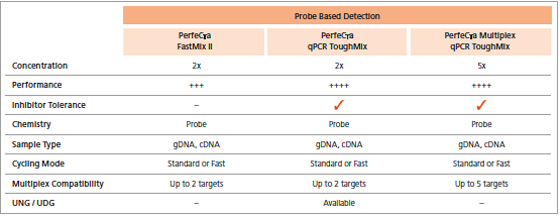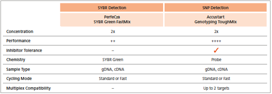 As formulações ToughMix permitem amplificação eficiente mesmo na presença de inibidores comuns de PCR.