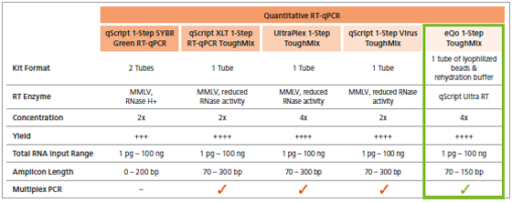 O eQo 1-Step ToughMix® é um reagente liofilizado baseado em sondas, fornecido com tampão de reidratação proprietário. Quando combinado com as “eQo beads”, forma um master mix estabilizado, 4X concentrado.